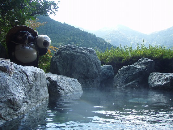 先日、当施設に立ち寄り、茶の湯エリアの温泉施設を利用しました。 1月下旬とあってか広めの露天風呂は寒く、多少がまんして展望風呂まで階段を登りましたら、向かいに佇む伊賀山系のなだらかな山並みが目に飛び込んできました。42〜43℃の美湯に浸りながら、遠く向こうに林立する白い風車や足元に広がる緑の茶畑に癒され、至福のひとときを味わえました。