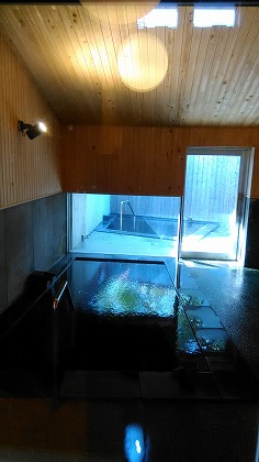 露天風呂は岩風呂と檜風呂の2つ、薄黄緑の温泉が注がれている。 温泉は加温されて41.5度位に調整されていて熱め。 壺湯は純米酒風呂となっていて、お酒は定期的に追加投入される。 施設内は所狭しと、土産物やゲーム機・ガチャポンが置かれており、ゆったり感はなく湯上がりに落ち着けない。 もう少しゆったりとした無駄な空間があれば、湯上がりに落ち着けるのだが。