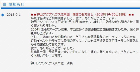 ホームページ上には「32年間にわたり、お客様よりご愛顧いただきましたが、当館は8月27日をもちまして閉館いたしました。誠にありがとうございました」と掲載されておりました。