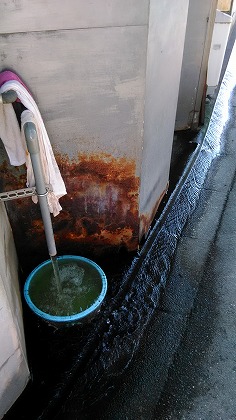 浴室が生臭い 排水溝から臭うので温泉の香りではなかった 消臭に20Kネットに入れた炭を排水溝の近くに山積みにしてるが効果はないようだ