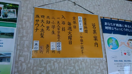 2019年4月に露天風呂を併設してリニューアルしたため入浴料が値上げ。 曜日に関係なく大人800円、子ども600円。 ゴールデンウィーク、お盆、年末年始など特定日は大人950円、子ども750円。 月曜・火曜が休みに変更。