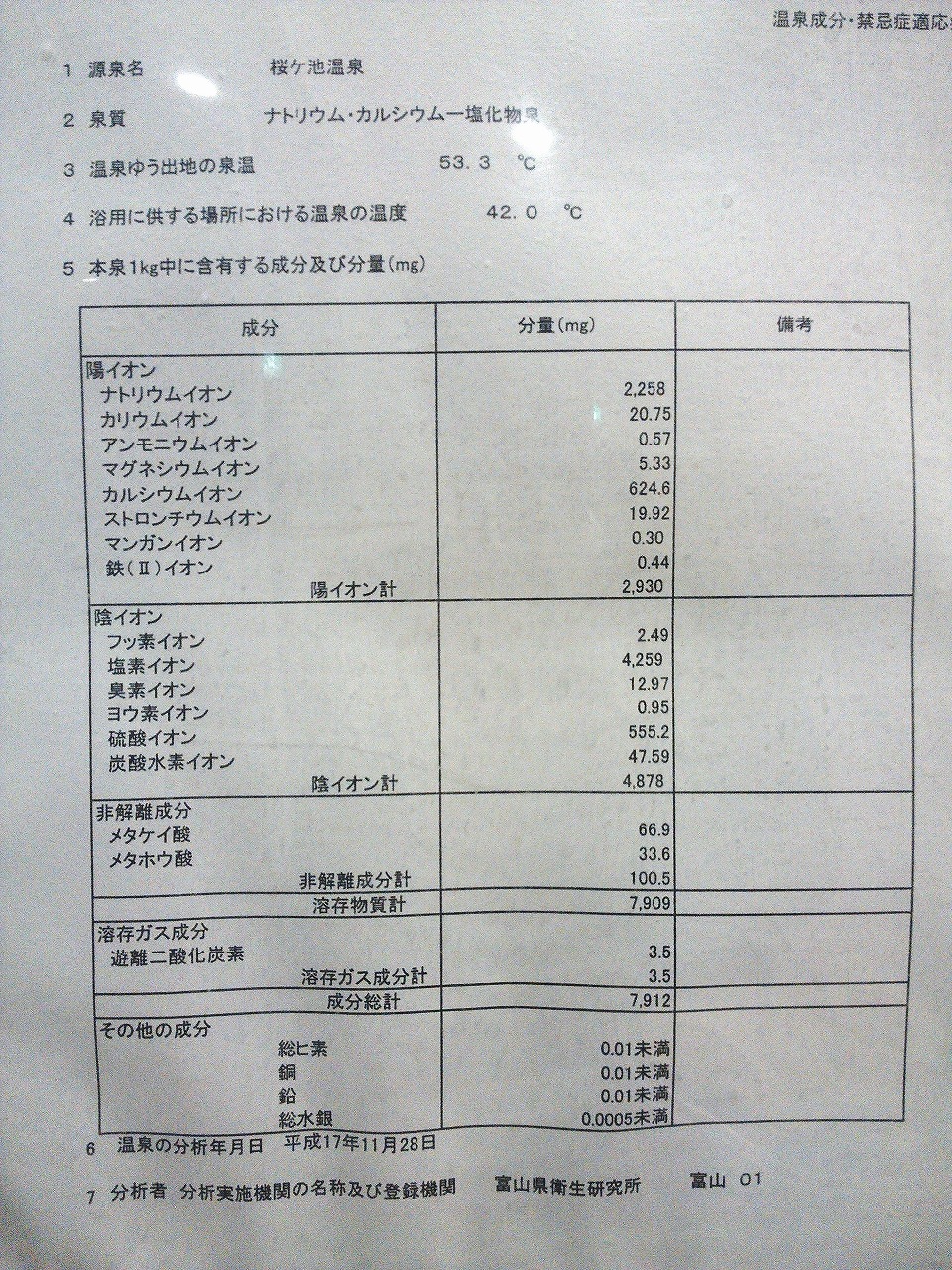 露天風呂は岩風呂と檜風呂の2つ、薄黄緑の温泉が注がれている。 温泉は加温されて41.5度位に調整されていて熱め。 壺湯は純米酒風呂となっていて、お酒は定期的に追加投入される。 施設内は所狭しと、土産物やゲーム機・ガチャポンが置かれており、ゆったり感はなく湯上がりに落ち着けない。 もう少しゆったりとした無駄な空間があれば、湯上がりに落ち着けるのだが。