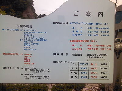 2019年4月に露天風呂を併設してリニューアルしたため入浴料が値上げ。 曜日に関係なく大人800円、子ども600円。 ゴールデンウィーク、お盆、年末年始など特定日は大人950円、子ども750円。 月曜・火曜が休みに変更。
