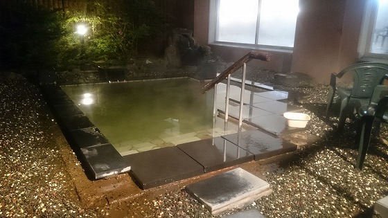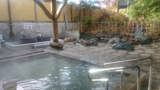 露天風呂は岩風呂と檜風呂の2つ、薄黄緑の温泉が注がれている。 温泉は加温されて41.5度位に調整されていて熱め。 壺湯は純米酒風呂となっていて、お酒は定期的に追加投入される。 施設内は所狭しと、土産物やゲーム機・ガチャポンが置かれており、ゆったり感はなく湯上がりに落ち着けない。 もう少しゆったりとした無駄な空間があれば、湯上がりに落ち着けるのだが。