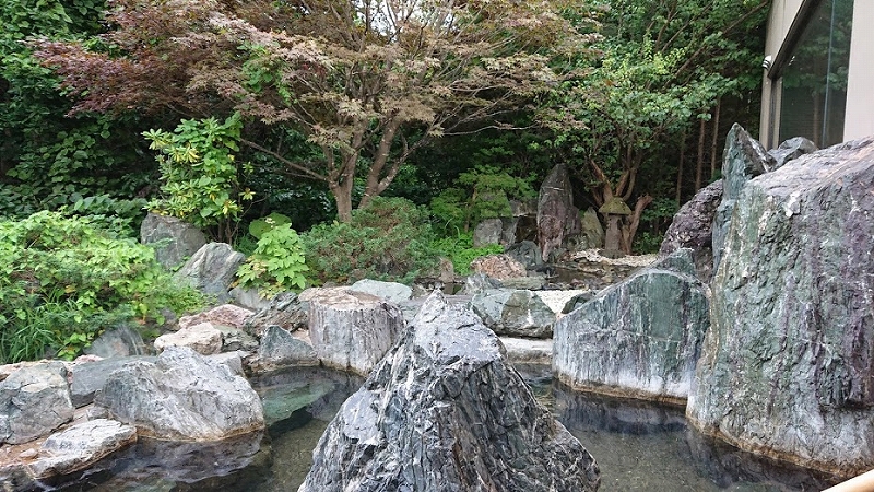 露天風呂は岩風呂と檜風呂の2つ、薄黄緑の温泉が注がれている。 温泉は加温されて41.5度位に調整されていて熱め。 壺湯は純米酒風呂となっていて、お酒は定期的に追加投入される。 施設内は所狭しと、土産物やゲーム機・ガチャポンが置かれており、ゆったり感はなく湯上がりに落ち着けない。 もう少しゆったりとした無駄な空間があれば、湯上がりに落ち着けるのだが。