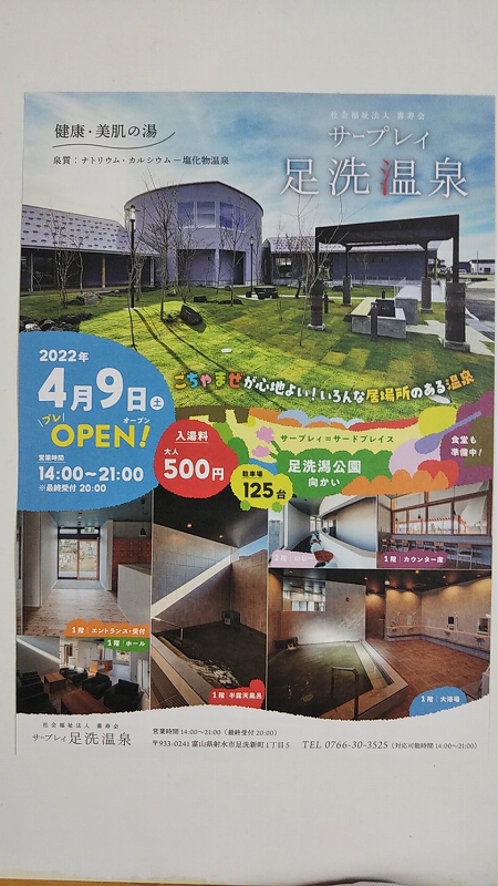 2022年4月9日 富山県射水市に「サープレィ足洗温泉」プレオープン