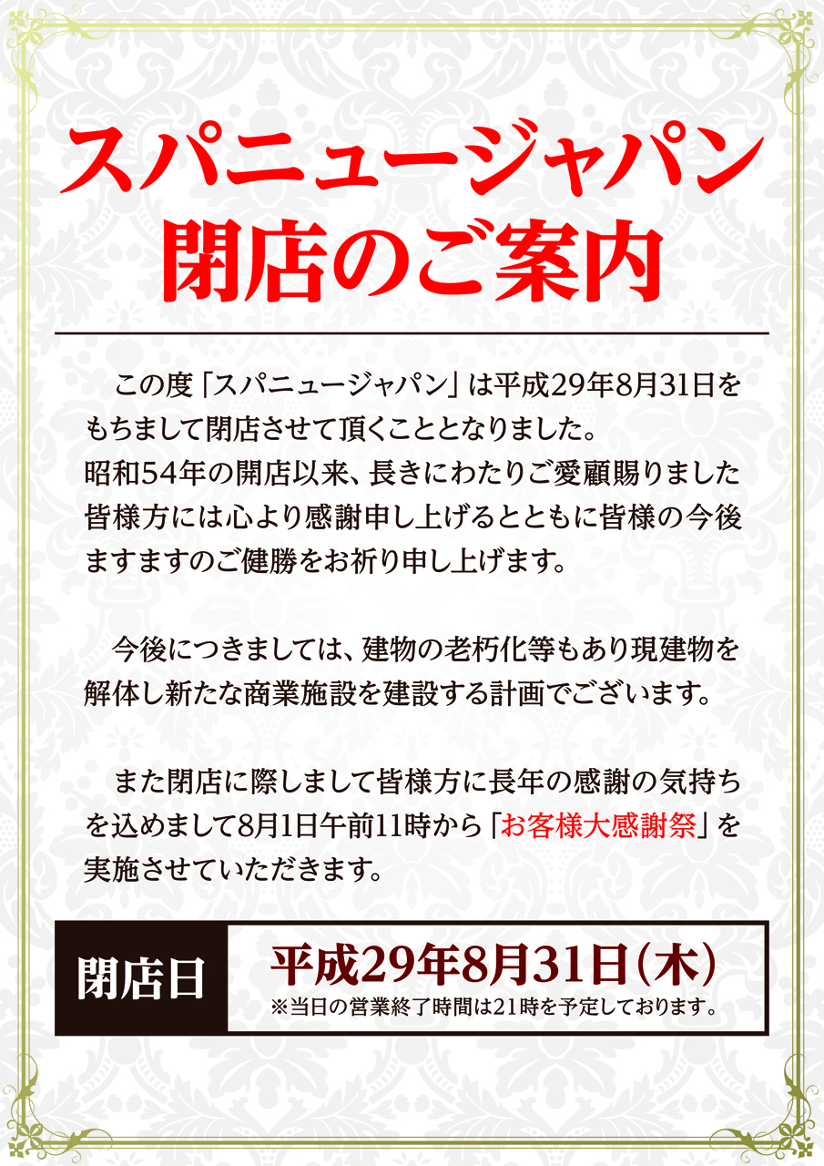 ホームページ上には「32年間にわたり、お客様よりご愛顧いただきましたが、当館は8月27日をもちまして閉館いたしました。誠にありがとうございました」と掲載されておりました。